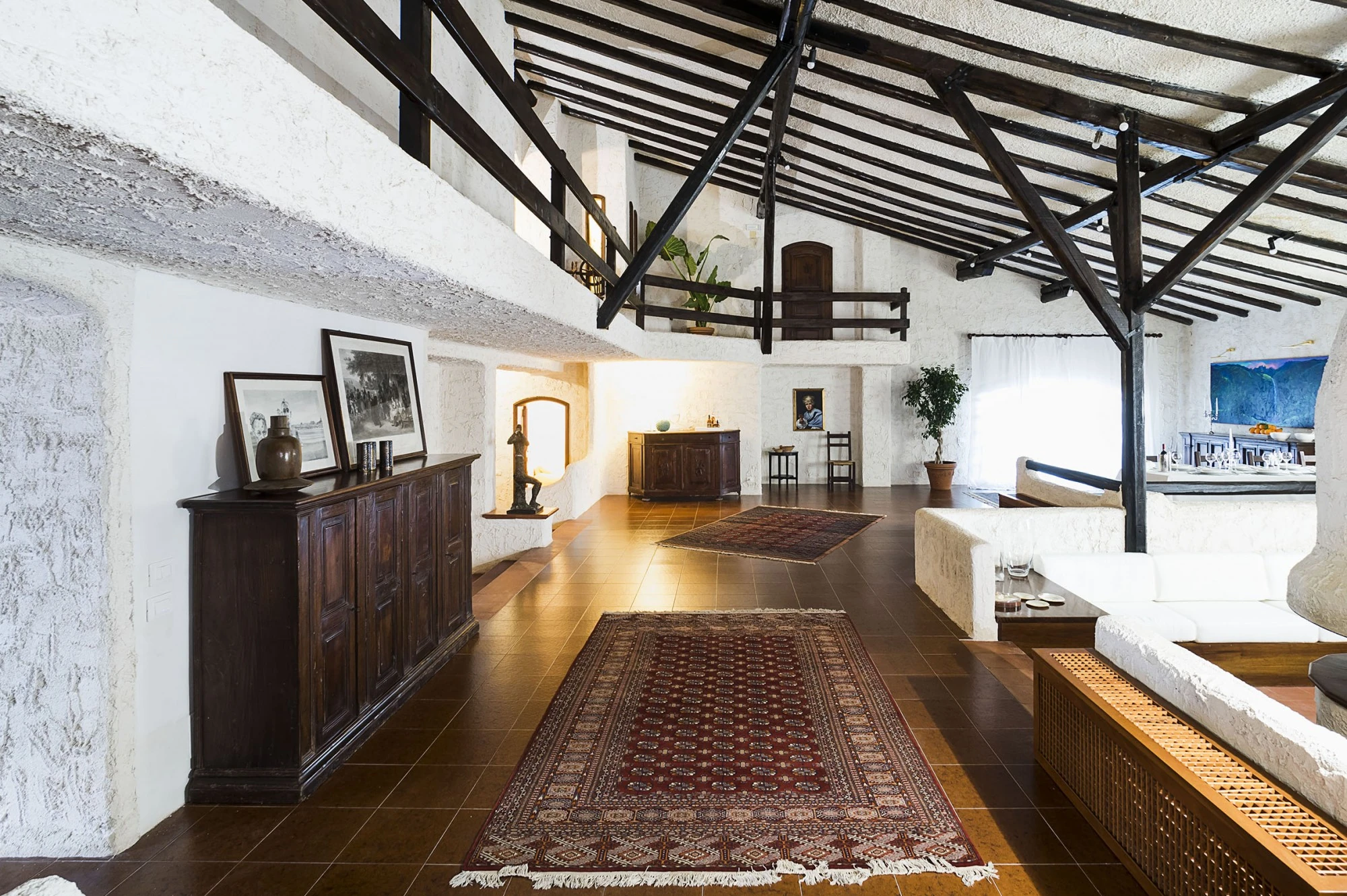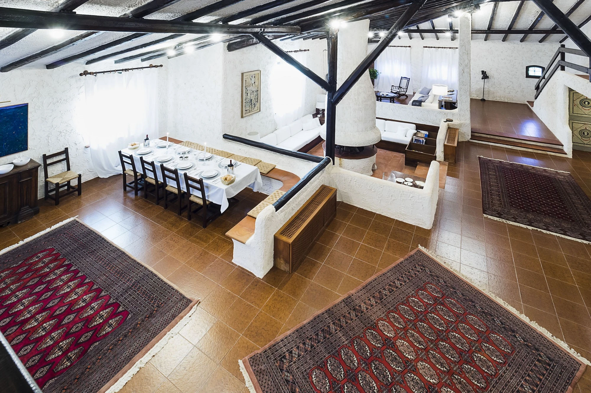 The comfortable, cozy interiors of the villa, on two floors with a surface area of over 500 square metres, include on the ground floor a large living room with ornamental fireplace, dining and conversation area, a kitchen, two bedrooms, two bathrooms with shower and a guest bathroom.
