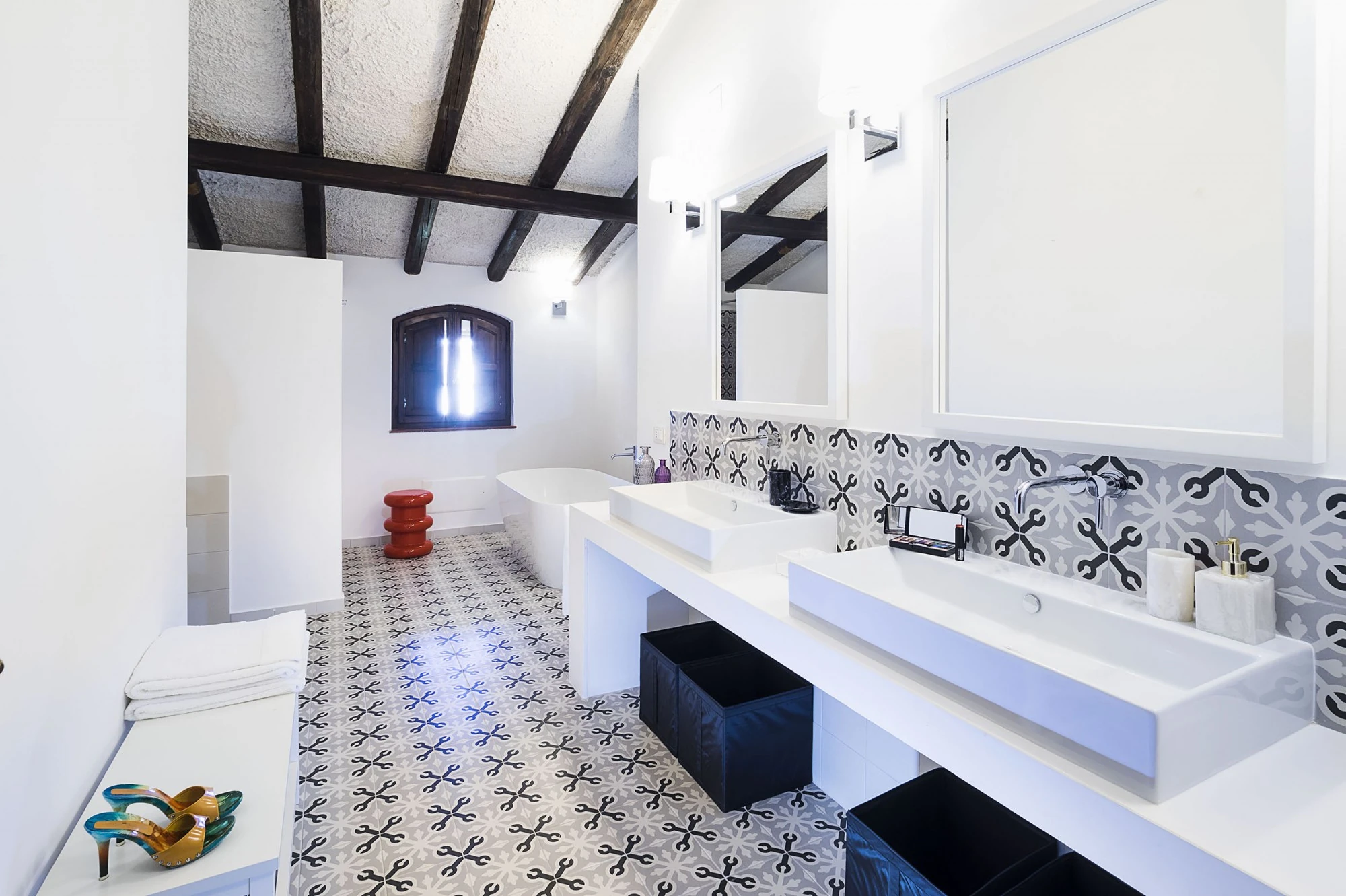 On the first floor are a master bedroom with en-suite tub and shower and three bedrooms with en-suite showers. Furnished with taste, the villa has all modern conveniences, such as wireless internet, four TVs, satellite receiver, air conditioning, washing machine and dishwasher.