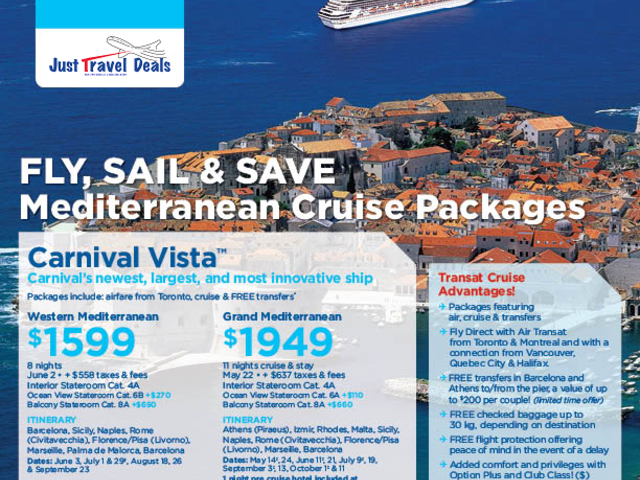 + taxes of $100 Per person, based on double occupancy, 8-night sailing, inside cat. 4G, in CAD