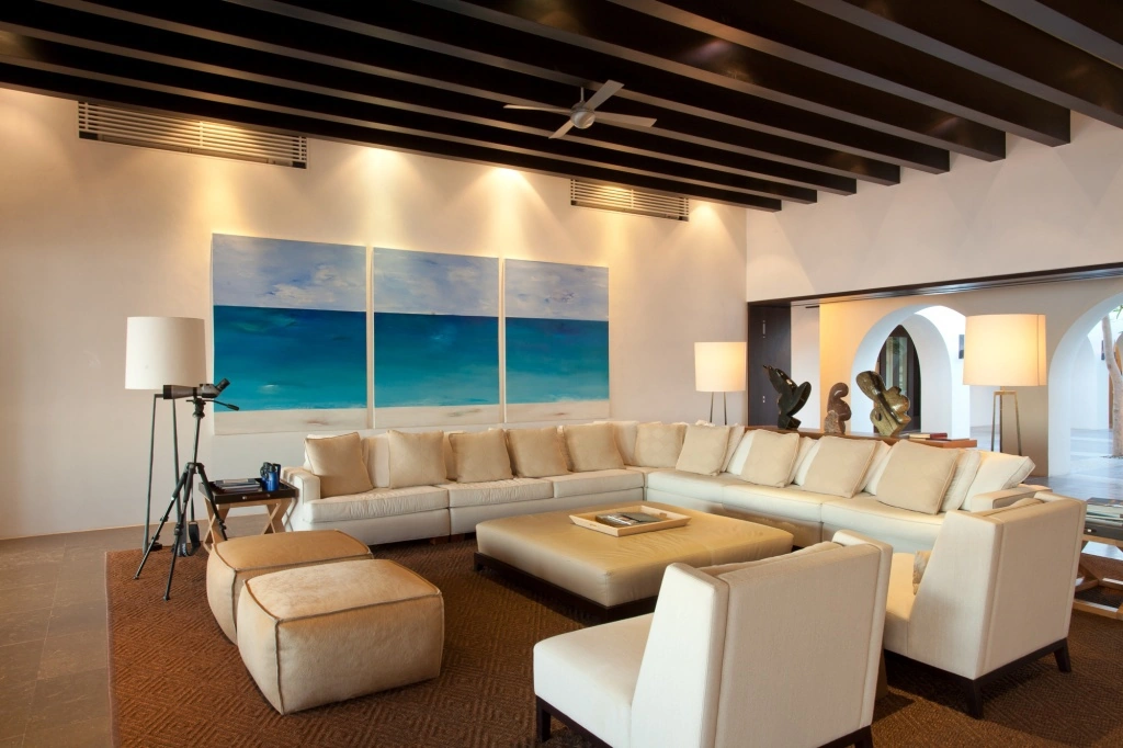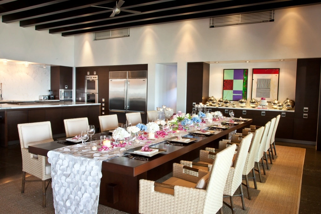 Indoors, Oliver's gourmet kitchen, plush living room and impressive 14-seat dining area are united in an open-concept design to create a paradise for guests that love to entertain. Stunning artwork is found in every room at Oliver with a special 3-panel piece in the living area that mirrors the sand, sea and sky pouring in through the massive recessed glass doors. Cool breezes flow off the Cortez and warm sunshine brightens, creating a comfortable and inviting ambience throughout the home.