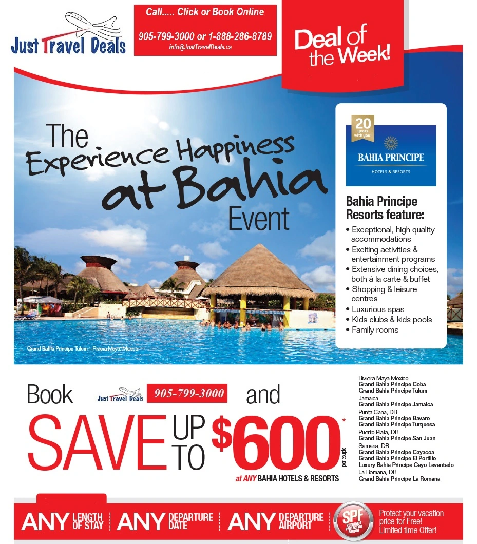 Experience Happiness at Bahia in Mexico, Jamaica, Puerto Plata, Punta Cana, Samana and La Romana