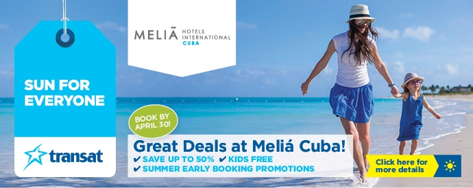 With its collection of vibrant hotels & select resorts that are part of Transat’s Family Collection, Meliá Cuba creates an enchanting world built around personalized service, authentic cuisine and plenty of perks also available with family concierge program and Meliá’s Cubamigos kids’ club. From family vacations to romantic getaways, Meliá proves that “everything is possible”.