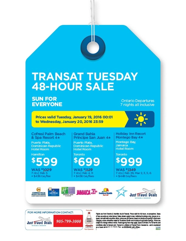 Jamaica & Puerto Plata 2 Day Vacation Sale from Toronto and Hamilton