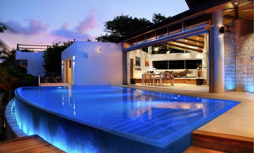 Recently built in 2011, Kite House defines the concept of state of the art technology with its filtered circulating air system, automated black out curtains, armored and sound proof glass doors and windows. The infinity pool uses no chemicals, and has a swim against the current system using a 5.5-horsepower motor for those guests who wish to keep in top shape while on holiday. The large Jacuzzi in the pool area can fit up to 9 people.