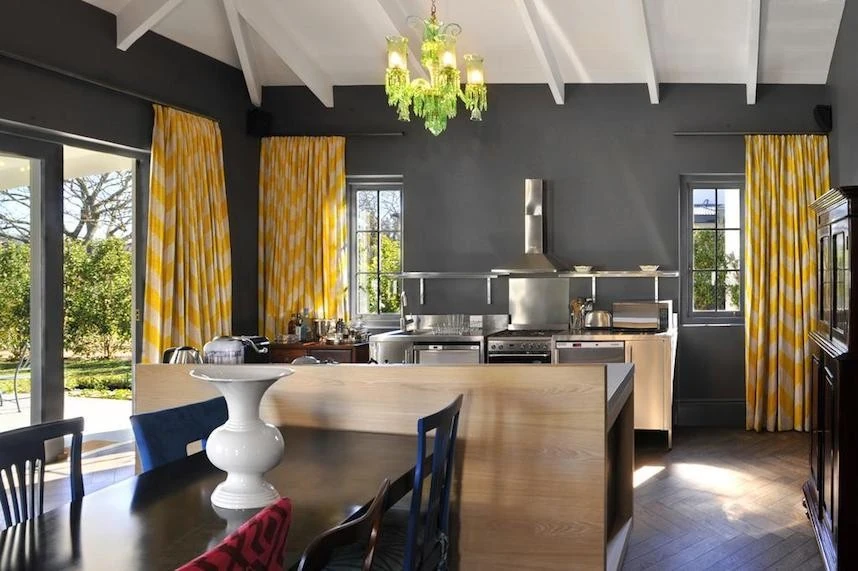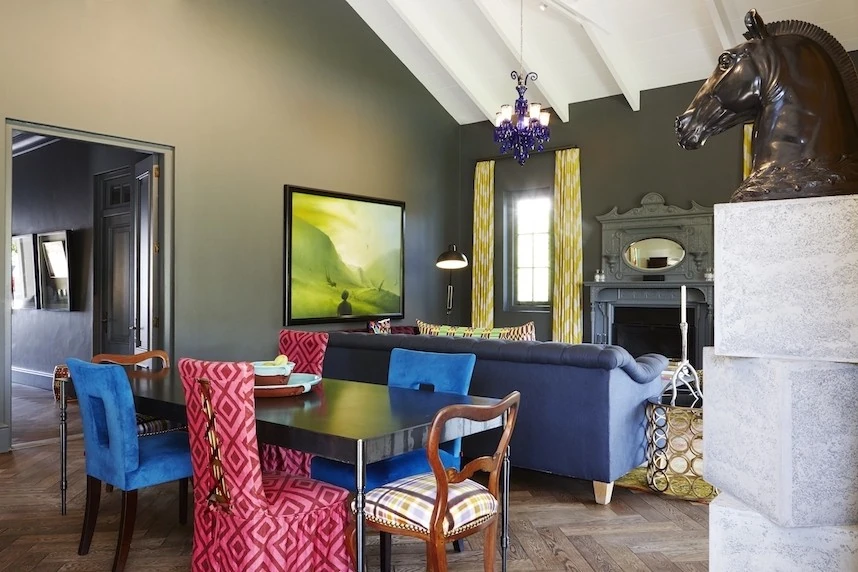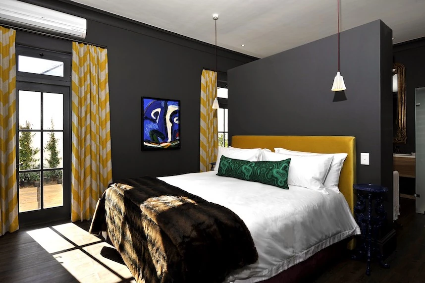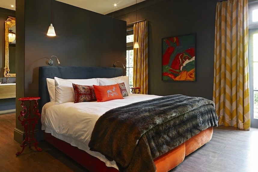 Rich gray walls form a canvas to showcase the owner's private art collection of impressive abstracts accentuated by antique furnishings and carefully selected contemporary accents. Spend time enjoying the collection and design or gazing out over your private pool from the terrace to mountains beyond. La Galerie is an eclectic villa in Franschhoek with a personality all its own, a fitting tribute to the rich artistic heritage of the valley.