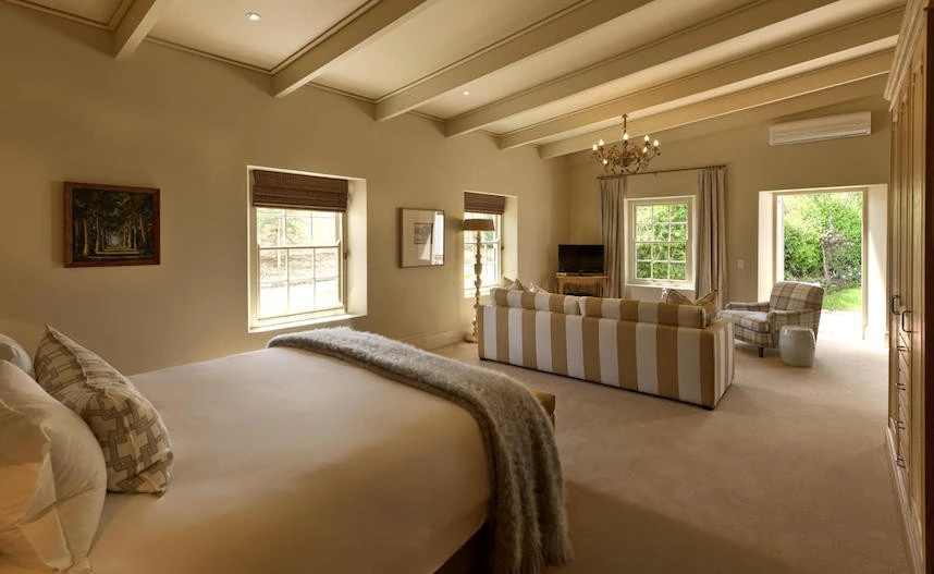 The warm ambiance that make up the interiors of the thoughtfully converted barn have been carefully selected to reflect the seasonal varieties of the surrounding orchards and vineyards. In turn, La Grange interiors are infused with stylistic elements reminiscent of a Victorian farmhouse – while the double-sided fireplace, private pool and large, plush furnishings, ensure that guests receive nothing less than a luxurious stay