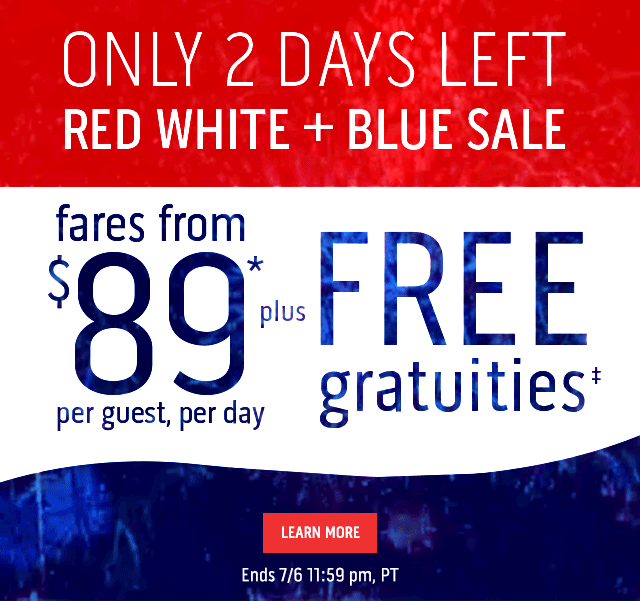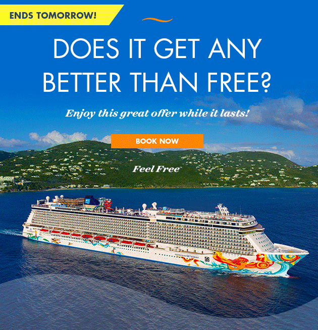 Norwegian's Free At Sea promotion is now an Endless Summer Spectacular! You can choose up to 5 fantastic, Free offers. When you book on an Oceanview Stateroom or higher they get to choose 2 Free offers and better yet, if they book a Suite or The Haven, they'll get all 5 offers for Free! They can choose from: Free Unlimited Open Bar, Free Specialty Dining, Free Pre-Paid Service Charges, Free WiFi and Friends and Family Sail Free*. Don't miss out on the deal of the Summer, book today,