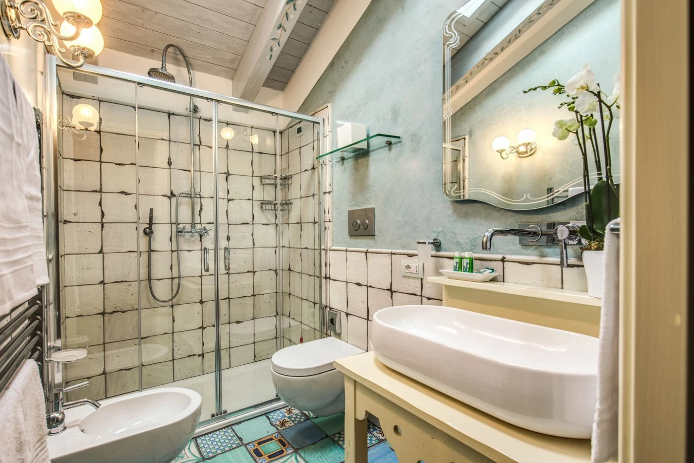 Bedroom 8 (Dependance - Ground Floor): King bedroom with private bathroom with shower