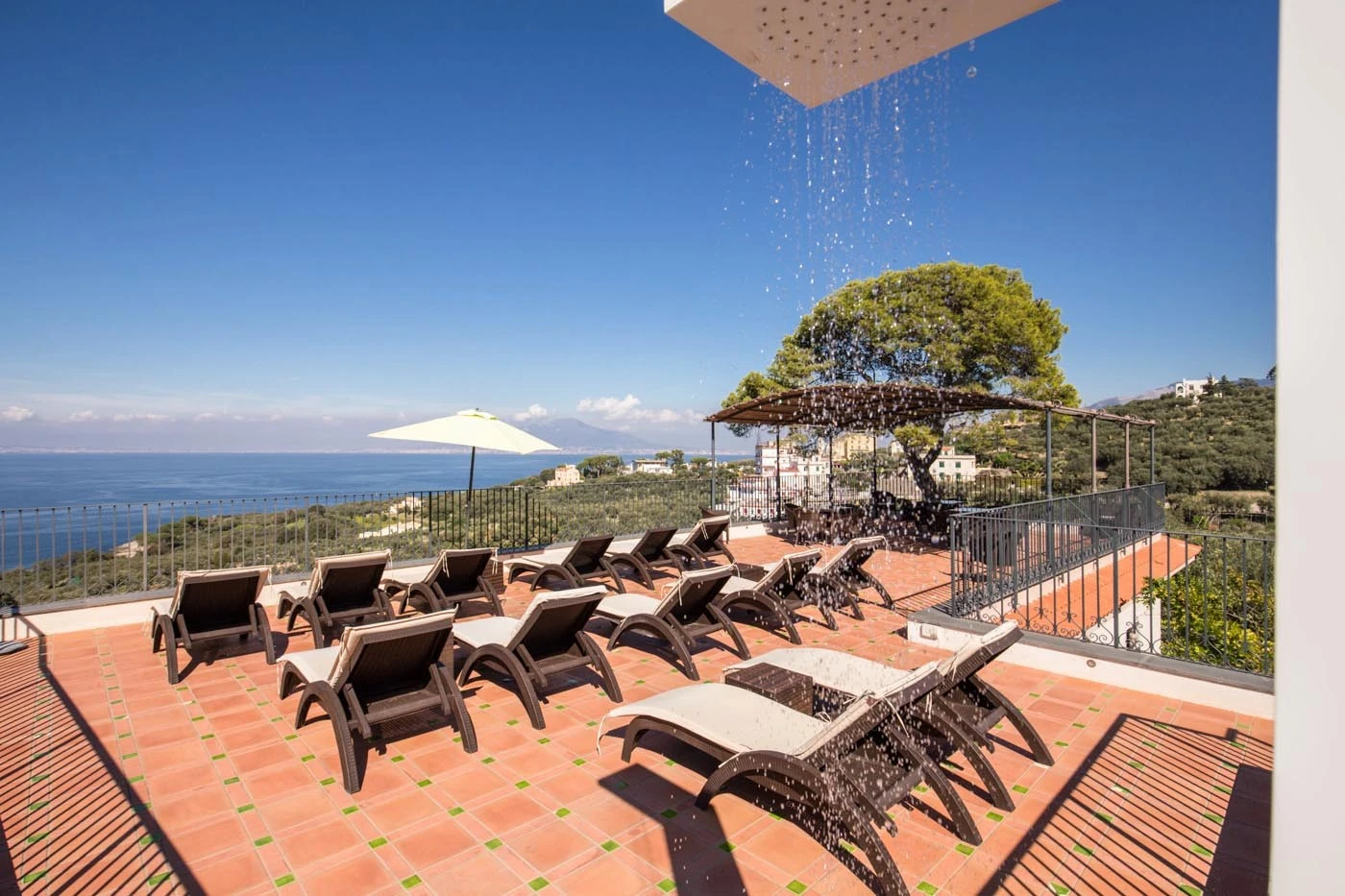 Stradivari's location is perfect for both beach lovers as well as those who wish to explore the Amalfi Coast and its marvels. The villa is set 3 kilometers from the center of Sorrento, away from the noise and traffic and yet very close to the town’s comforts. The grounds offer unforgettable and picture-perfect views of the Gulf of Naples, Capri and Mt. Vesuvius. Good to know: There is an 850 meter walking trail down to the fishing village below where you can have lunch or dinner right on the beach. The village can be also reached by car in 5 minutes.