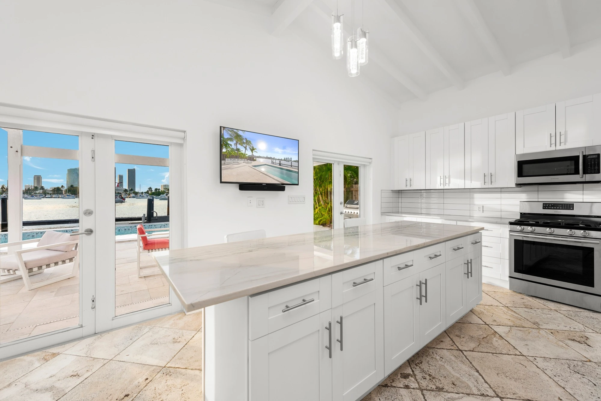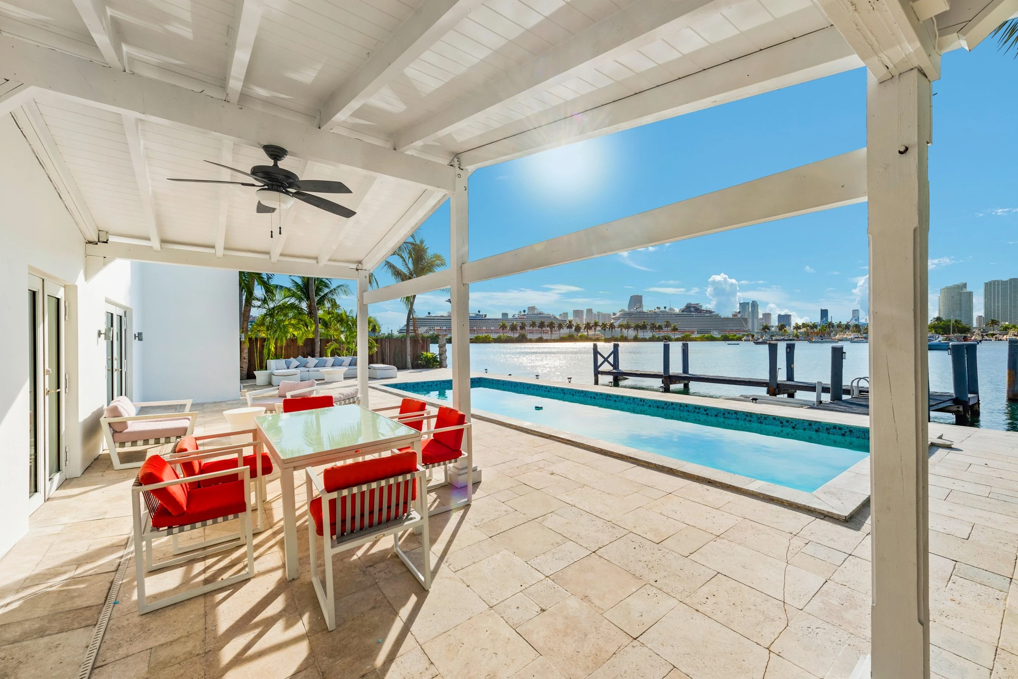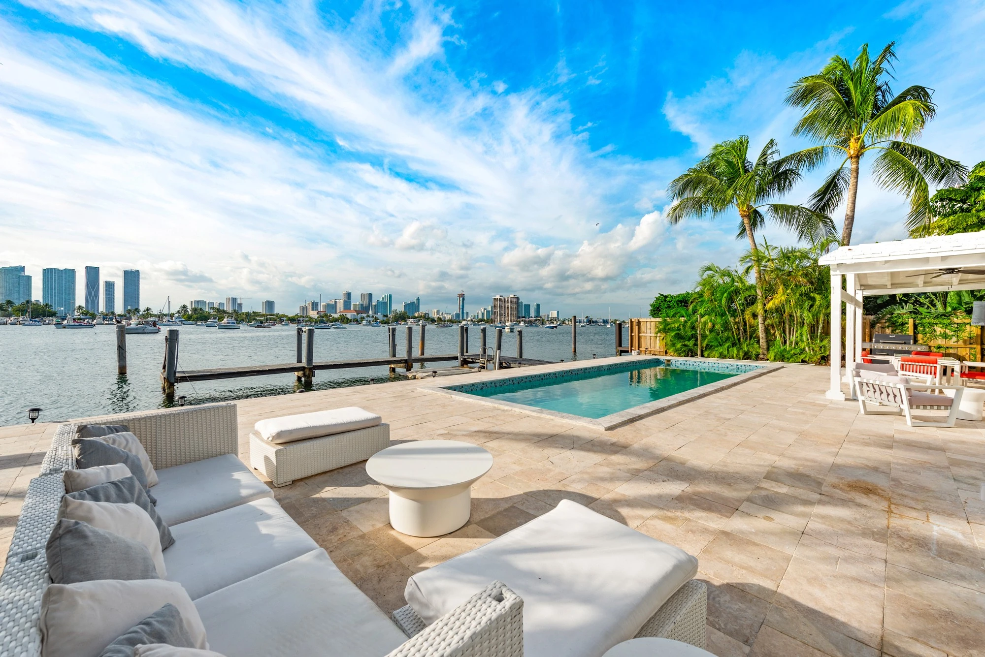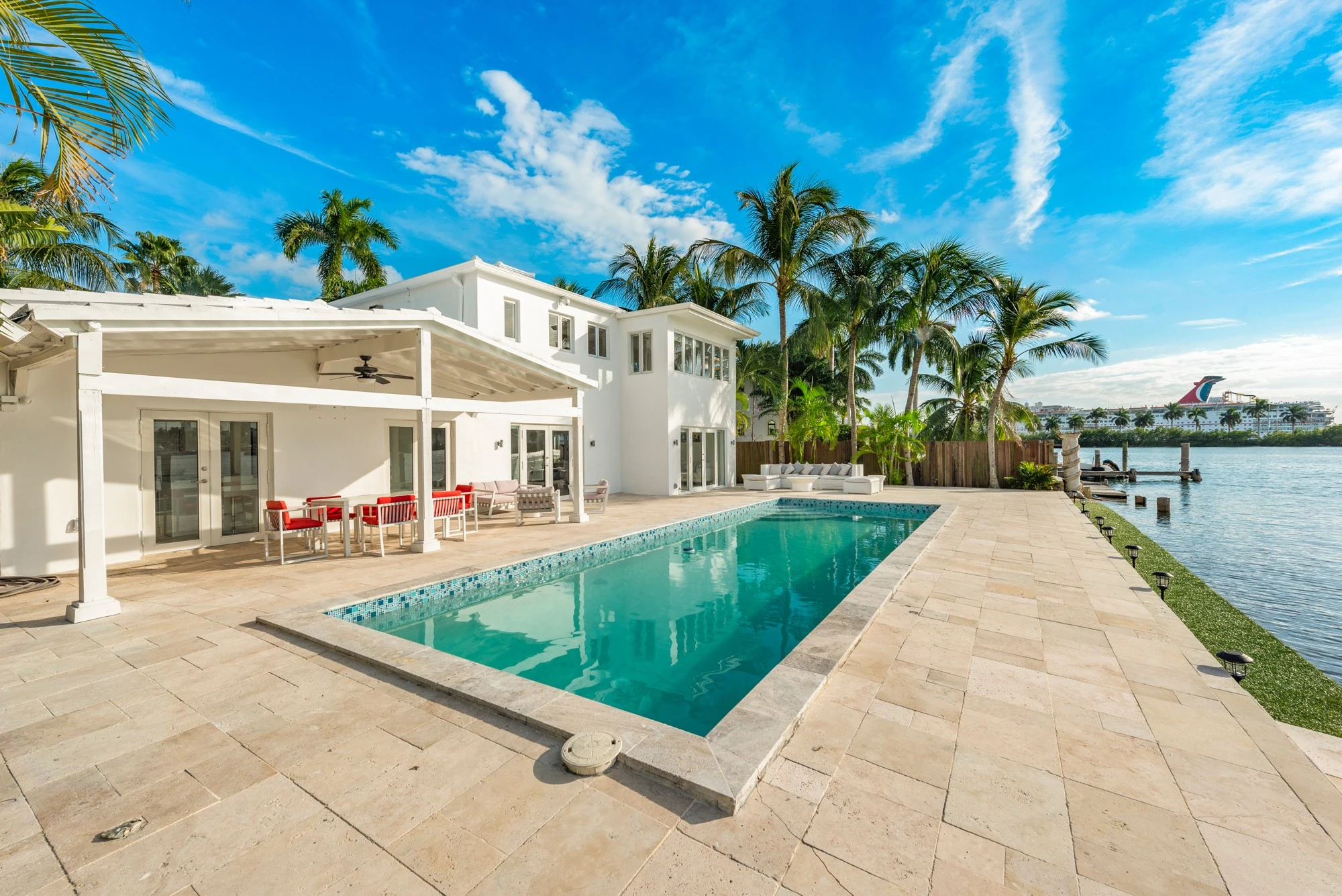 Book your dream vacation staying at the Villa Tura luxury villa Miami Florida. Villa Tura is a stunning wide bay island home offering five bedrooms and four and a half bathrooms with a massive water frontage on a pie shaped lot.